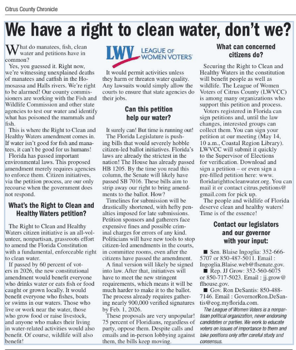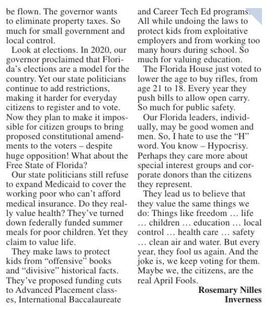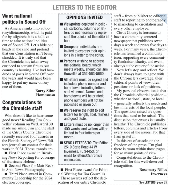 This letter was published in the Citrus County Chronicle on October 11, 2024
